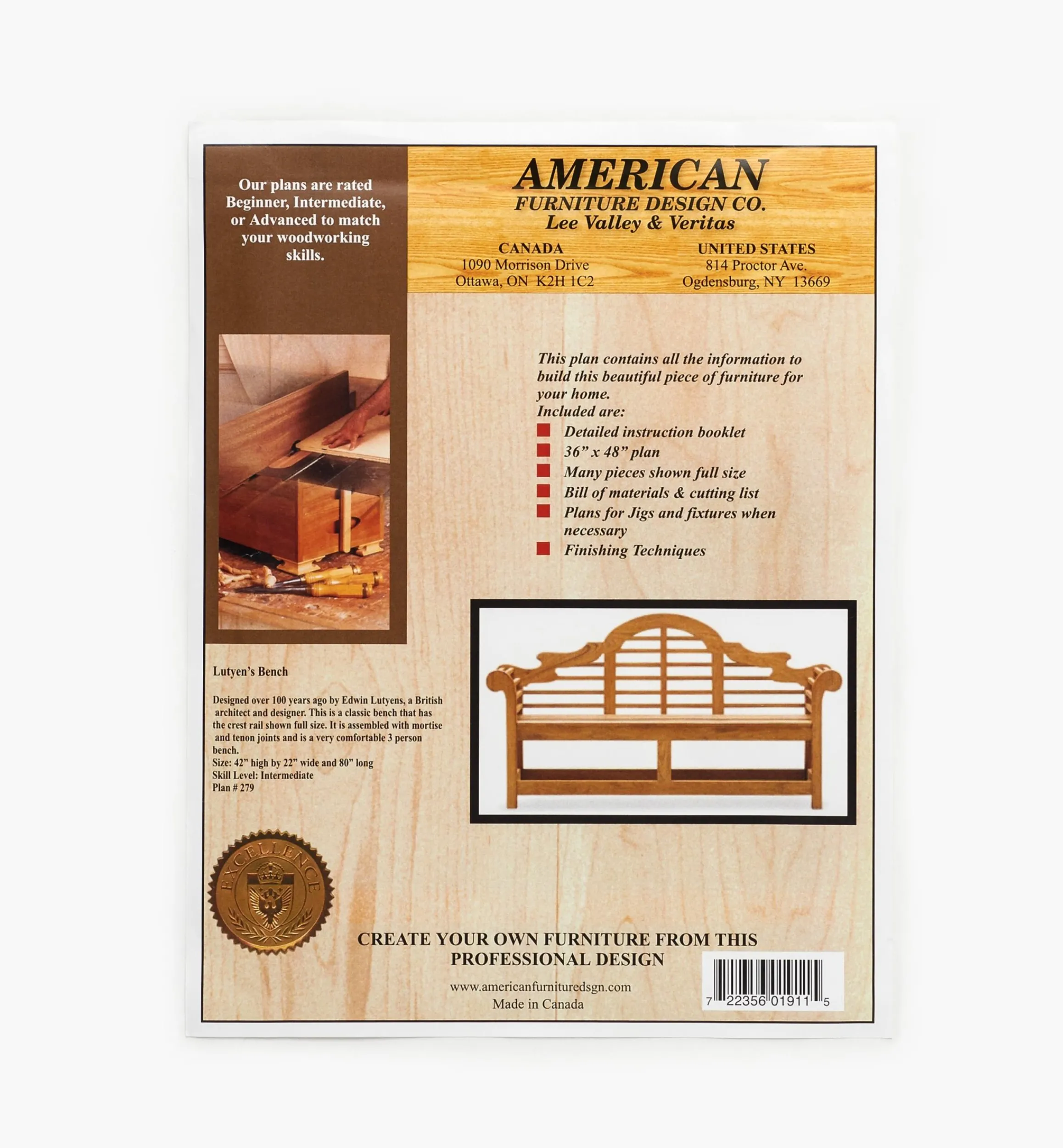 Be the first to review “Lee Valley Plans>Lutyens Garden Bench Plan” Cancel reply
