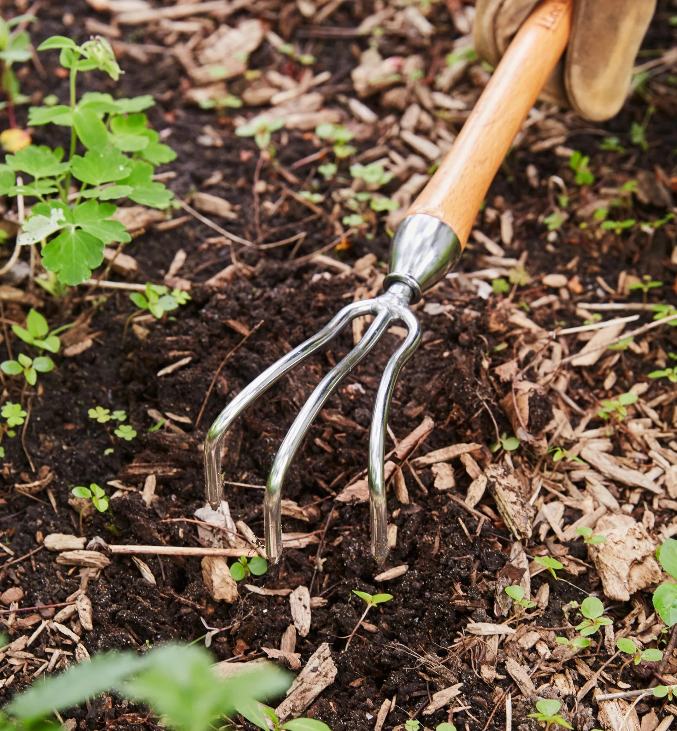 Lee Valley Weeding>Mid-Length Three-Prong Cultivator